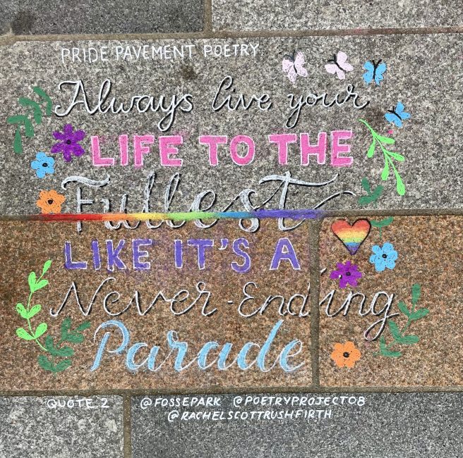 Visitors are encouraged to take photos of the poetry and share their favourites on social media, tagging @fossepark and using the hashtag #PridePavementPoetry, to help spread the celebration far and wide.”