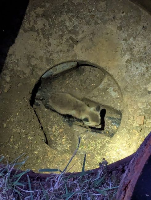 Concerned Glenfield Road residents had heard barking for some time. First, they thought it was perhaps a neighbour’s new dog. But eventually, they managed to pinpoint where the sound was coming from – inside a storm drain. When they lifted off the cover, they could see a little fox cub approximately six feet down (1.8m) at the bottom.