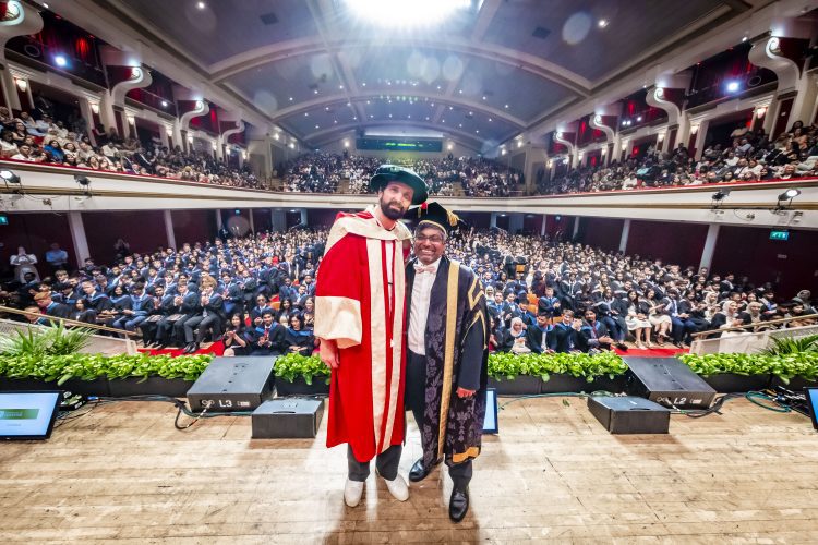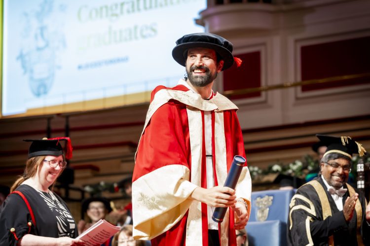 Upon receiving his award, Sergio told the audience: “I’d like to give a huge thank you to the university for this incredible honour, and all of you graduating today, nice one, let’s have a round of applause for you all.