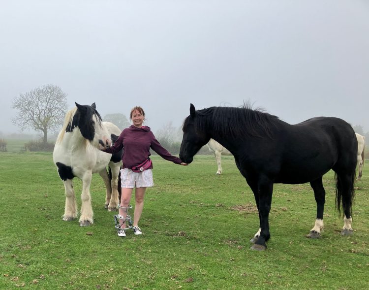 A Leicestershire woman is celebrating remarkable progress in her recovery after suffering a severe leg injury in a horse?riding accident last summer.